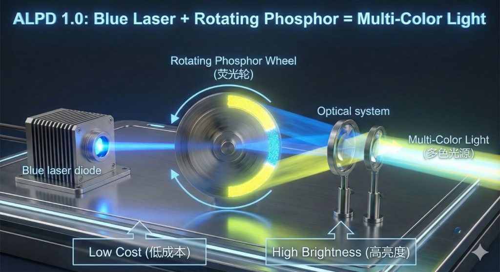 - ALPD 2.0/3.0:主要针对亮度提升和对比度优化,涉及多色激光与荧光轮结合的技术。